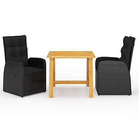 vidaXL Matgrupp för trädgården 3 delar svart 3068711