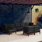 vidaXL Loungegrupp för trädgården med dynor 9 delar svart massiv furu 3097131