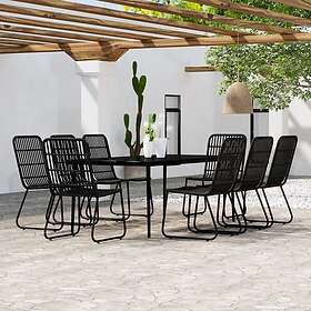 vidaXL Matgrupp för trädgården 9 delar svart 3099184