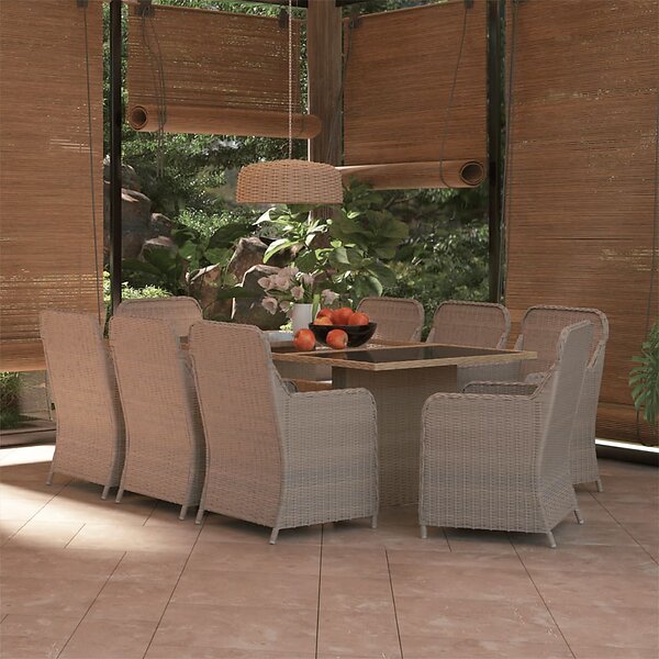 vidaXL Matgrupp för trädgården 9 delar konstrotting brun 3059466