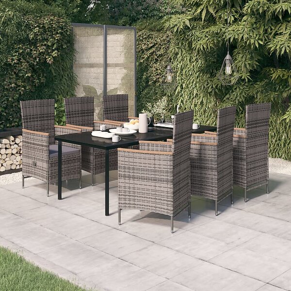 vidaXL Havemiddagsbord med hynder 7 dele grå 3099435