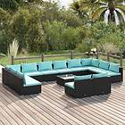 vidaXL Loungegrupp för trädgården med dynor 13delar konstrotting svart 3102145