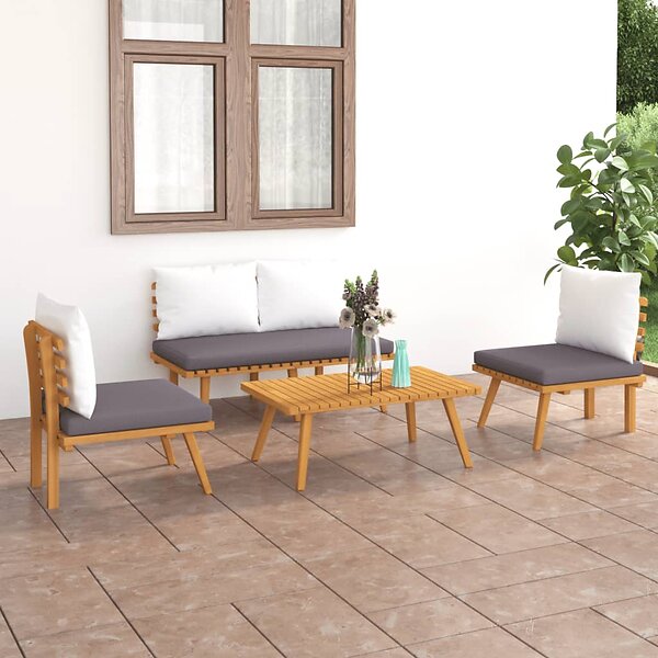 vidaXL Loungegrupp för trädgården med dynor 4 delar massivt akaciaträ 46676