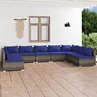 vidaXL Loungegrupp för trädgården med dynor 9 delar konstrotting grå 3101910