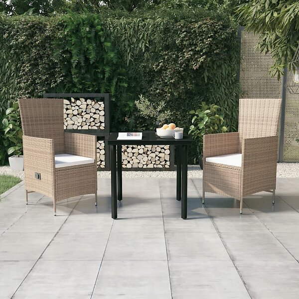 vidaXL Have Spisebordssæt med hynder 3 dele beige 3099437