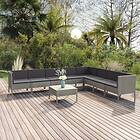 vidaXL Loungegrupp för trädgården 9 delar med dynor konstrotting grå 3094462