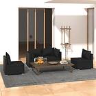 vidaXL Loungegrupp för trädgården med dynor 4 delar konstrotting svart 3102168