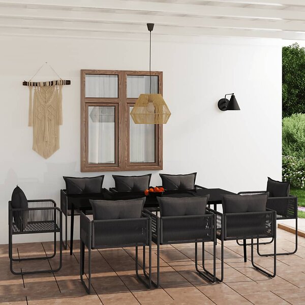 vidaXL Havemiddagsbordssæt 9 dele Sort 3099088