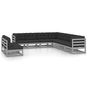 vidaXL Loungegrupp med Dynor 9 delar grå massiv furu 3076906