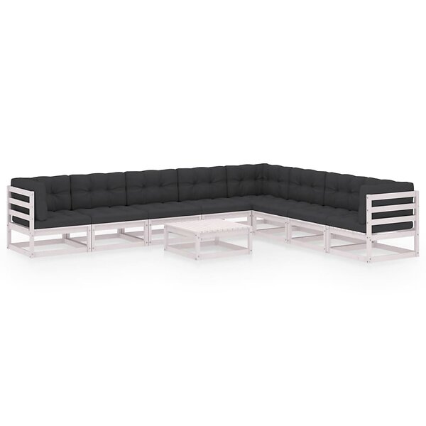 vidaXL Loungegrupp med dynor 9 delar vit massiv furu 3076890