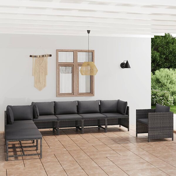 vidaXL Lounge Sæt 8 Stykker med Puder Grå Rattan