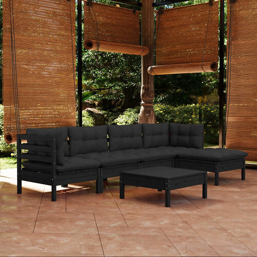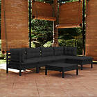 vidaXL Loungegrupp för trädgården med dynor 6 delar svart massiv furu 3096368