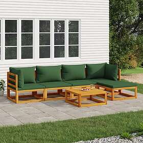 vidaXL Loungegrupp 6 delar gröna dynor massivt trä 3155312