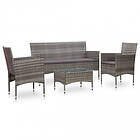 vidaXL Loungegrupp för trädgården 4 delar med dynor konstrotting grå 45890