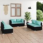 vidaXL Loungegrupp för trädgården med dynor 6 delar konstrotting svart 3102209