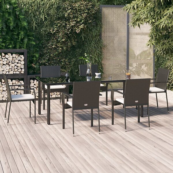 vidaXL Matgrupp för trädgården med dynor 7 delar svart konstrotting 3185135