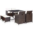 vidaXL Matgrupp för trädgården med dynor 9 delar konstrotting brun 42526