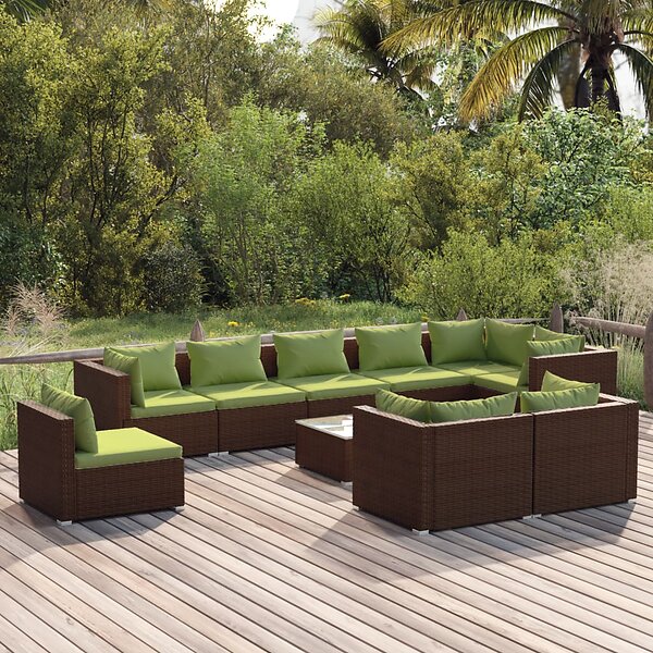 vidaXL Loungegrupp för trädgården med dynor 10 delar konstrotting brun 3102636