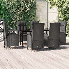 vidaXL Matgrupp för trädgården med dynor 7 delar svart konstrotting 3185172