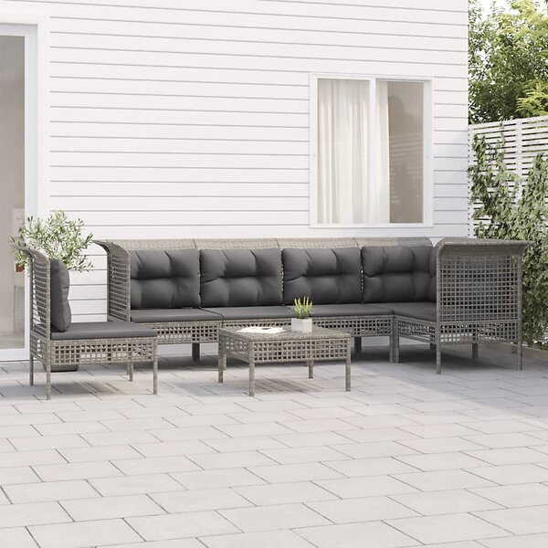 vidaXL Loungegrupp för trädgården med dynor 7 delar grå konstrotting 3187525