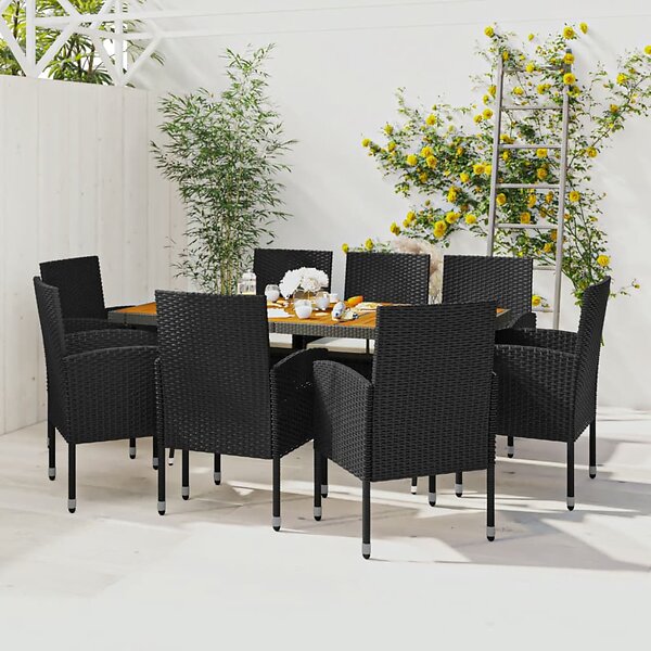 vidaXL Matgrupp för trädgården 9 delar konstrotting svart 3120110