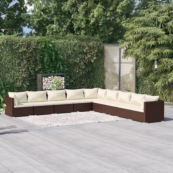 vidaXL Loungegrupp för trädgården med dynor 9 delar konstrotting brun 3101786