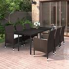 vidaXL Matgrupp för trädgården 7 delar med dynor konstrotting och glas 3099677