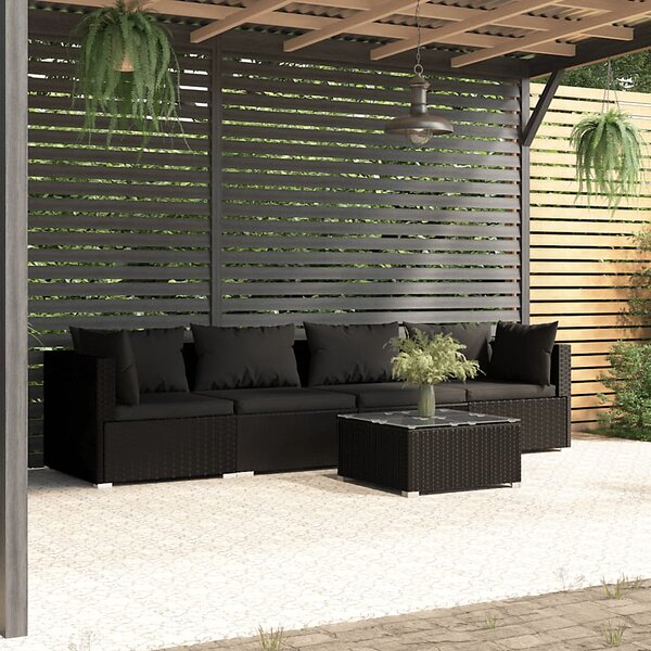 vidaXL Loungegrupp med dynor 5 delar konstrotting svart 3101432