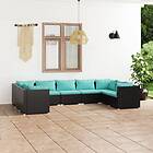 vidaXL Loungegrupp för trädgården med dynor 9 delar konstrotting svart 3101969