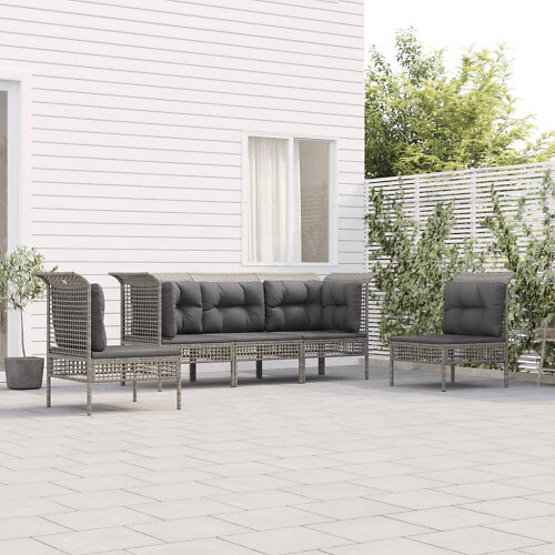 vidaXL Trädgårdssoffa med dynor 5 delar grå konstrotting 3187486