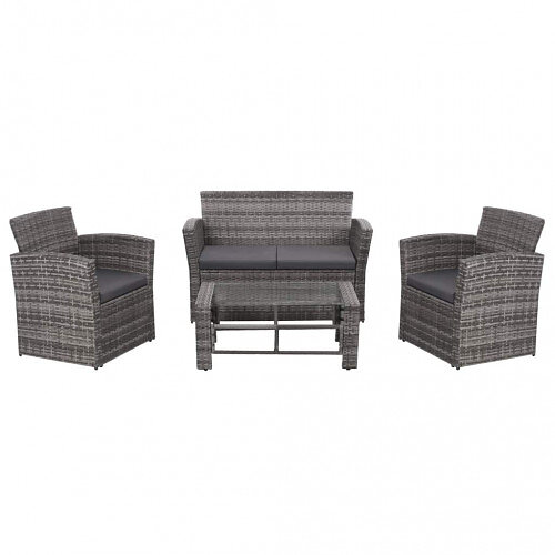 vidaXL Loungegrupp för trädgården med dynor 4 delar konstrotting grå 44420