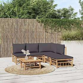 vidaXL Loungegrupp 6 delar mörkgrå dynor bambu 3155231