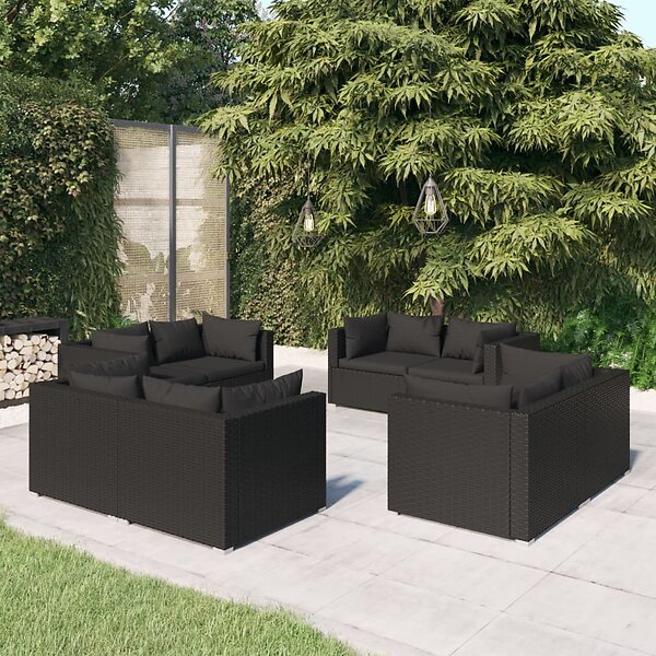 vidaXL Loungegrupp för trädgården med dynor 8 delar konstrotting svart 3101552