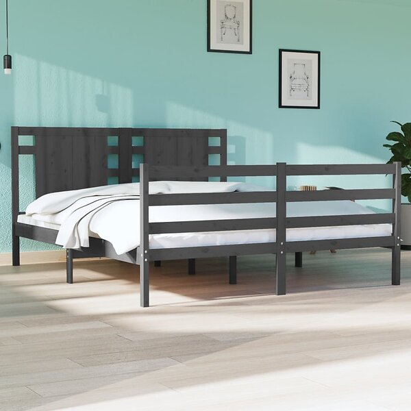 vidaXL Seng Ramme grå massiv furu 150x200 cm 3104290