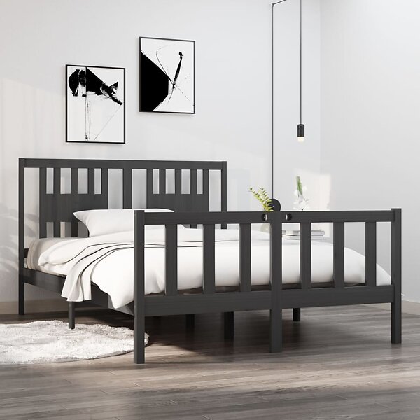 vidaXL Seng Ramme grå massivt trä 135x190 cm 4FT6 3104105