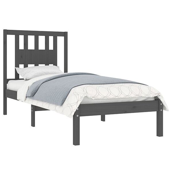vidaXL Seng Ramme grå massivt trä 90x190 cm enkelsäng 3104030