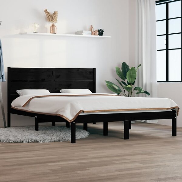vidaXL Seng Ramme svart massivt trä 135x190 cm liten dubbelsäng 3104132