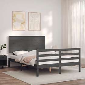 vidaXL Seng Ramme med huvudgavel grå 140x190 cm massivt trä 3195203