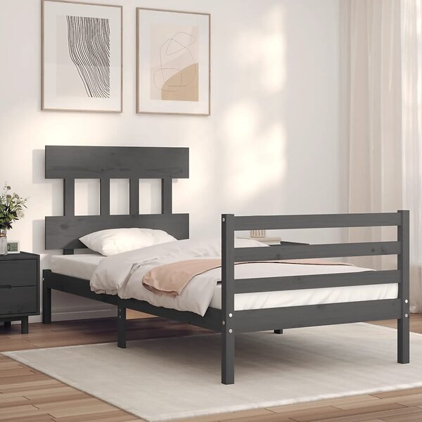 vidaXL Seng Ramme med huvudgavel grå 100x200 cm massivt trä 3195148