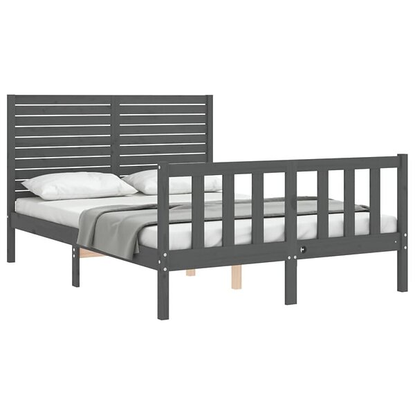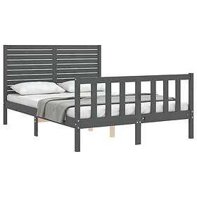 vidaXL Seng Ramme med huvudgavel grå 140x190 cm massivt trä 3193188