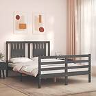 vidaXL Seng Ramme med huvudgavel grå 140x200 cm massivt trä 3194573