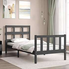 vidaXL Seng Ramme med huvudgavel grå 90x200 cm massivt trä 3192998