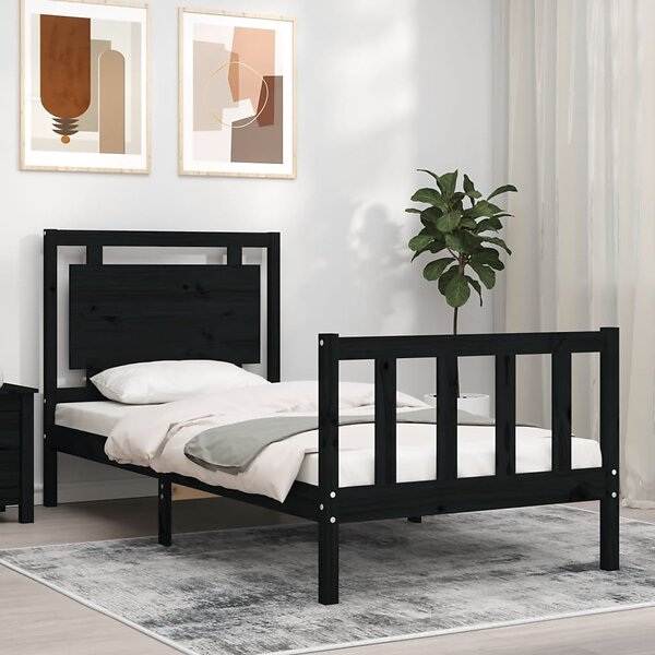 vidaXL Seng Ramme med sänggavel svart 2FT6 Small enkel massivt trä 3192130