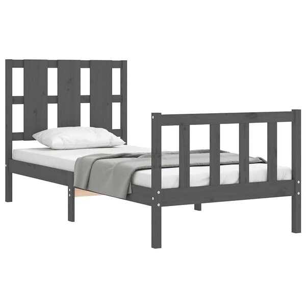 vidaXL Seng Ramme med huvudgavel grå 100x200 cm massivt trä 3192223