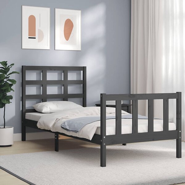 vidaXL Seng Ramme med huvudgavel grå 100x200 cm massivt trä 3192093