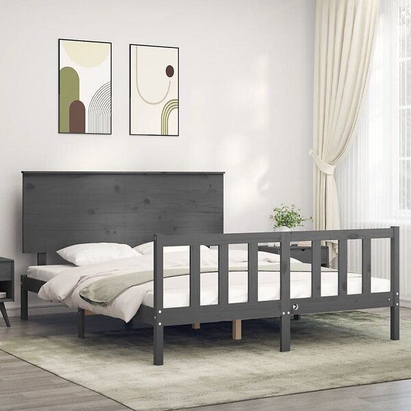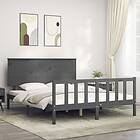 vidaXL Seng Ramme med huvudgavel grå 160x200 cm massivt trä 3193413