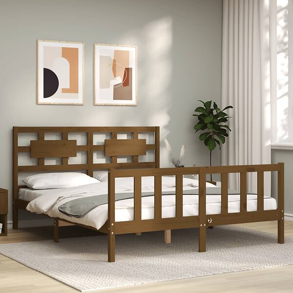vidaXL Seng Ramme med huvudgavel honungsbrun King Size massivt trä 3192564