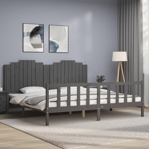 vidaXL Seng Ramme med huvudgavel grå 200x200 cm massivt trä 3192318