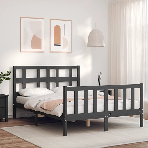 vidaXL Seng Ramme med huvudgavel grå 140x190 cm massivt trä 3192993