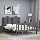 vidaXL Seng Ramme med huvudgavel grå 140x190 cm massivt trä 3192278